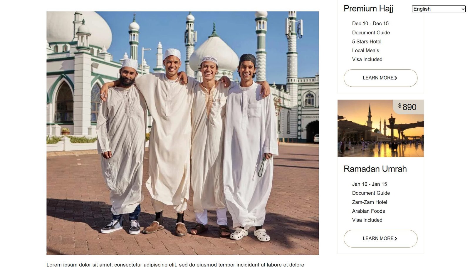 - Services Page – Showcase services from travel guidance to full pilgrimage support.